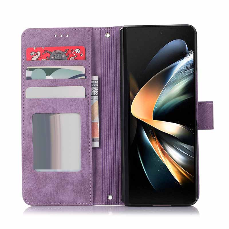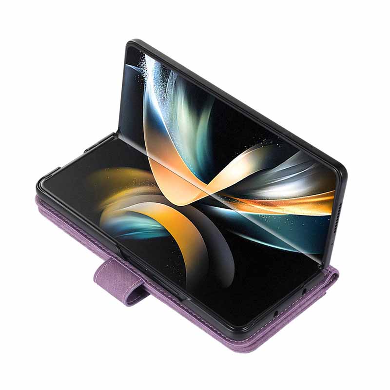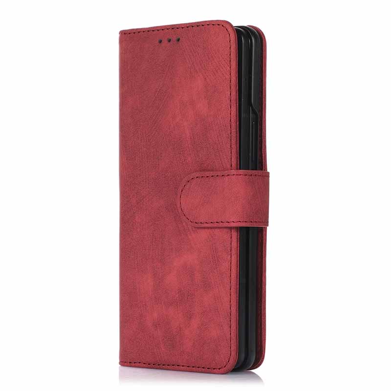 PREMIUM MATERIALEN VOOR EEN DUURZAME ERVARING - Deze Samsung Galaxy ZFold3/4/5 lederen hoes is gemaakt van een hoogwaardige PU+PC buitenkant en een zachte TPU binnenbumper, wat zorgt voor een comfortabele aanraking en een getextureerd uiterlijk. Versterkte stiksels maken het duurzamer en beschermender.