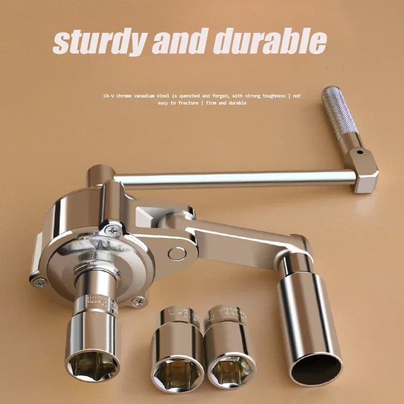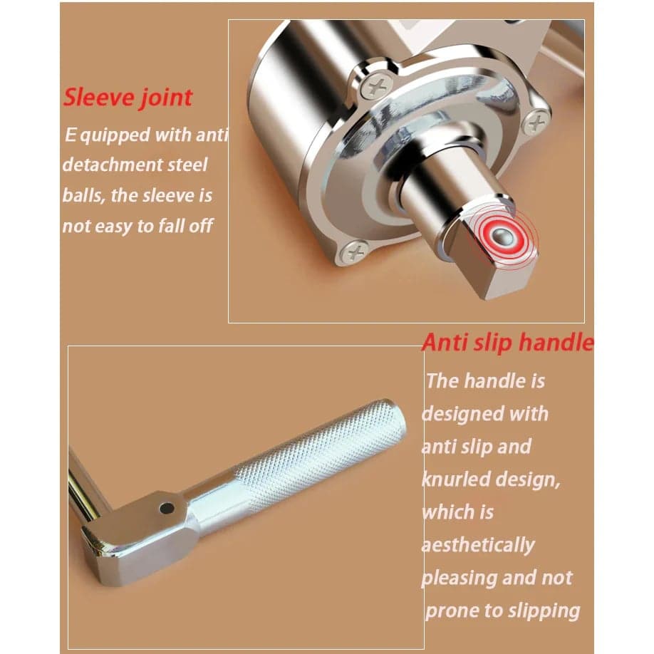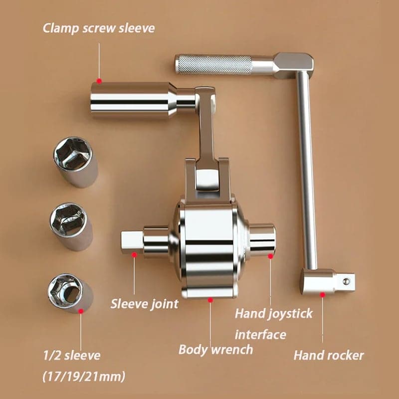 Gemakkelijk in gebruik - sluit eenvoudig het slingerhandvat aan en schuif de andere vaste huls over de dichtstbijzijnde moer om een stabiele ondersteunende positie te verkrijgen. Begin met het losdraaien van deze moeren en gebruik de handjoystick bij het demonteren van de kleine schroef. De handjoystick kan afzonderlijk worden gebruikt, eenvoudig en handig.