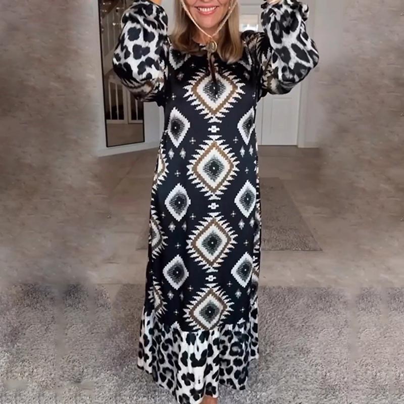 Pakket bevat: 1 * Bohemian Casual Printed Long-sleeve Dress voor dames