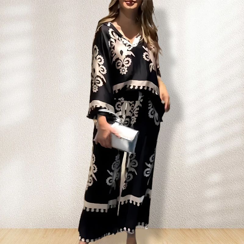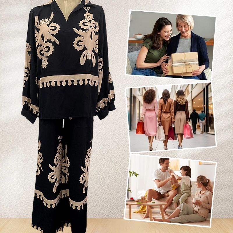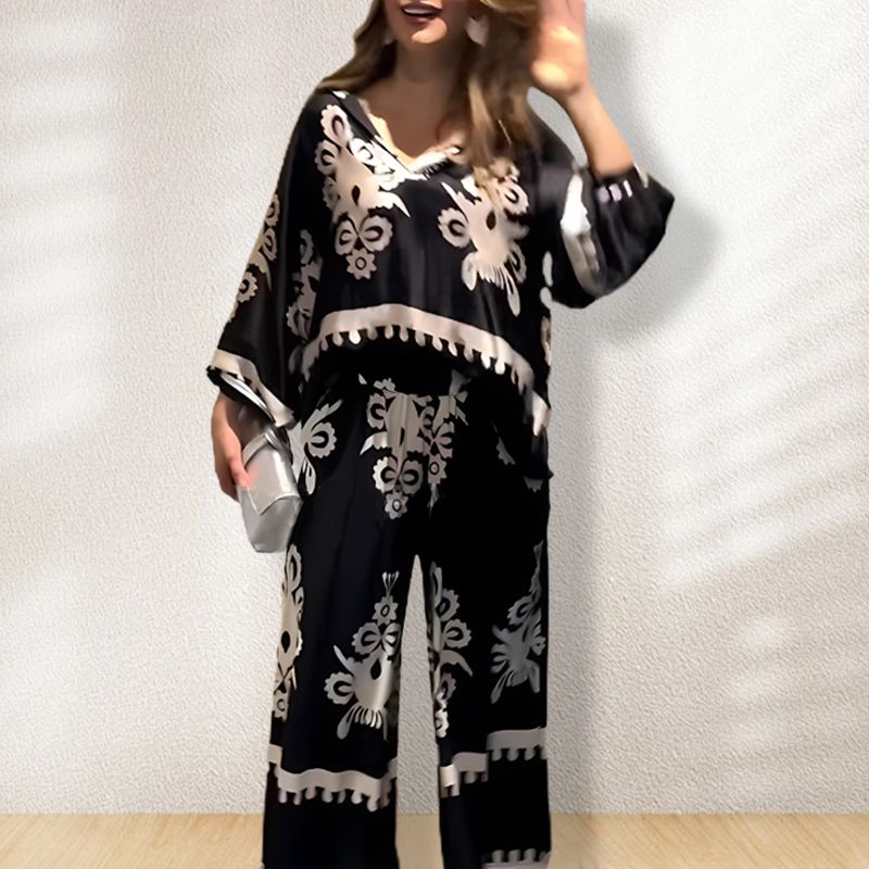 Ongedwongen Ontspannen Tweedelige Set Voor Dames Langemouwtop En Wijde Broek