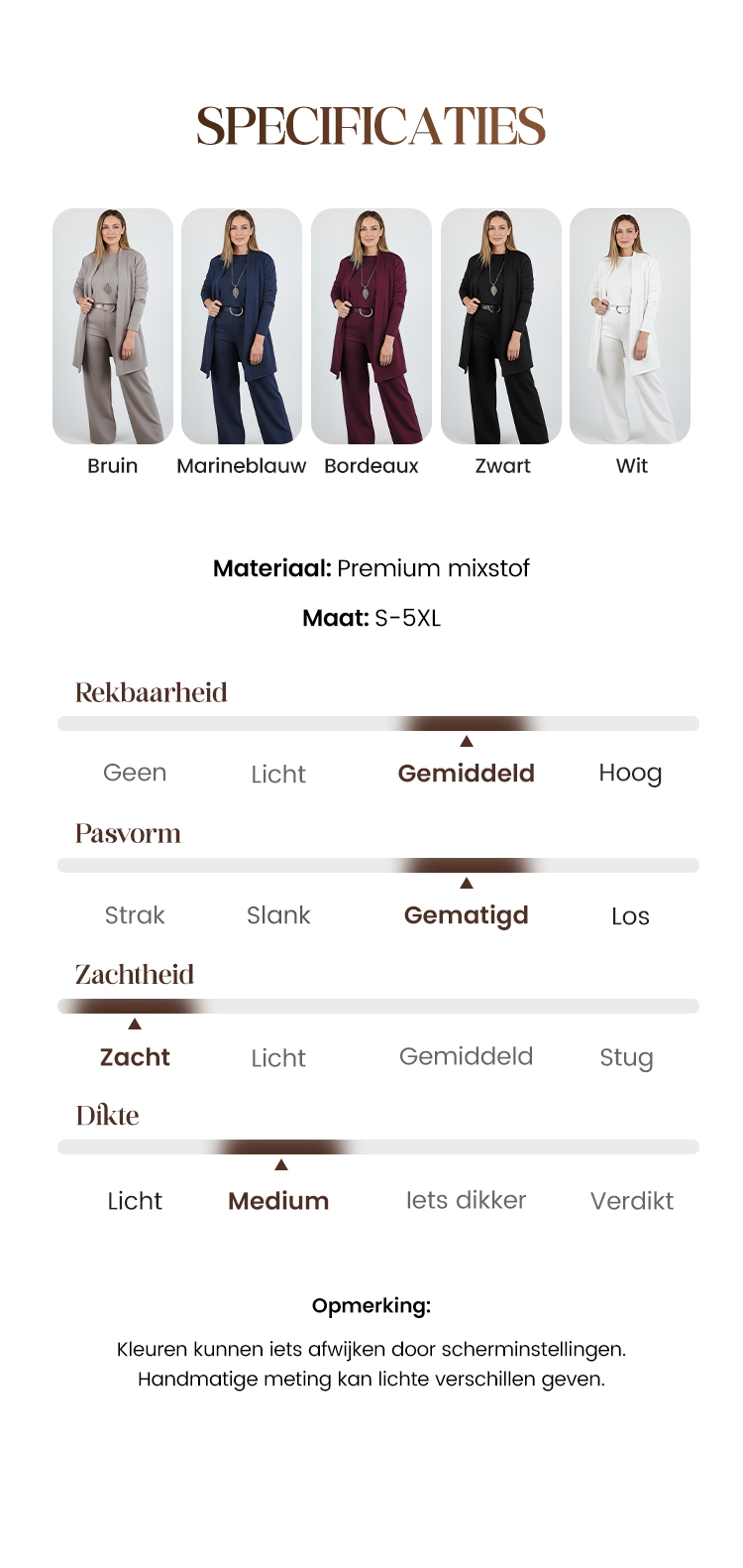Elegant Lange Cardigan & Top & Broek 3-Delige Set