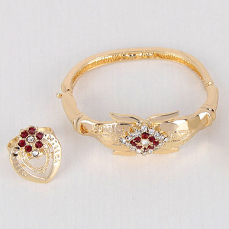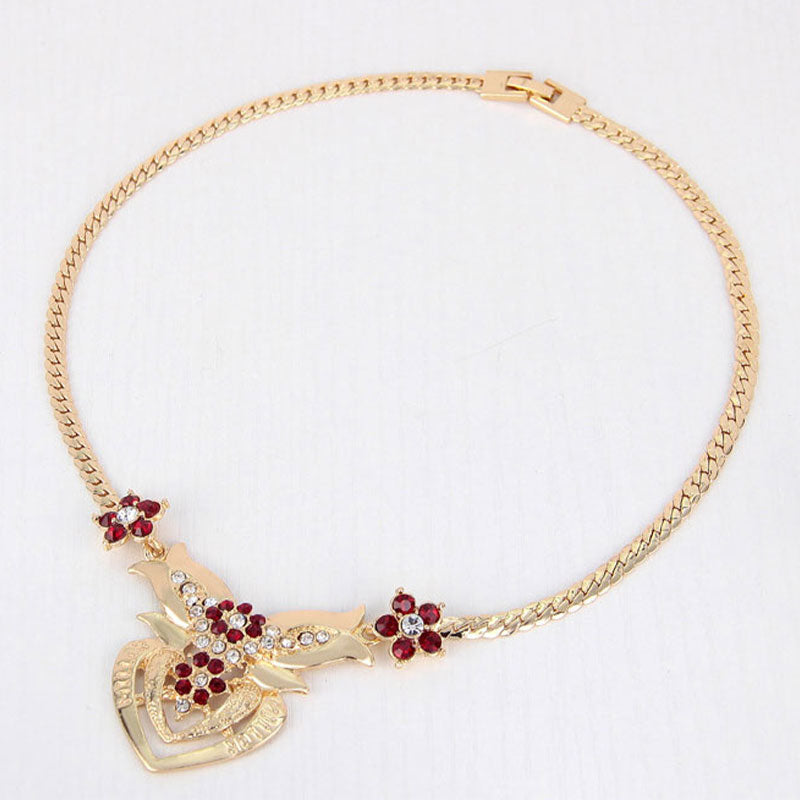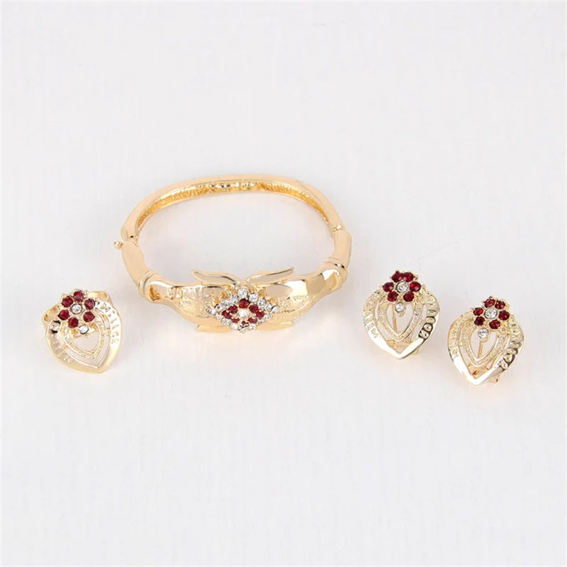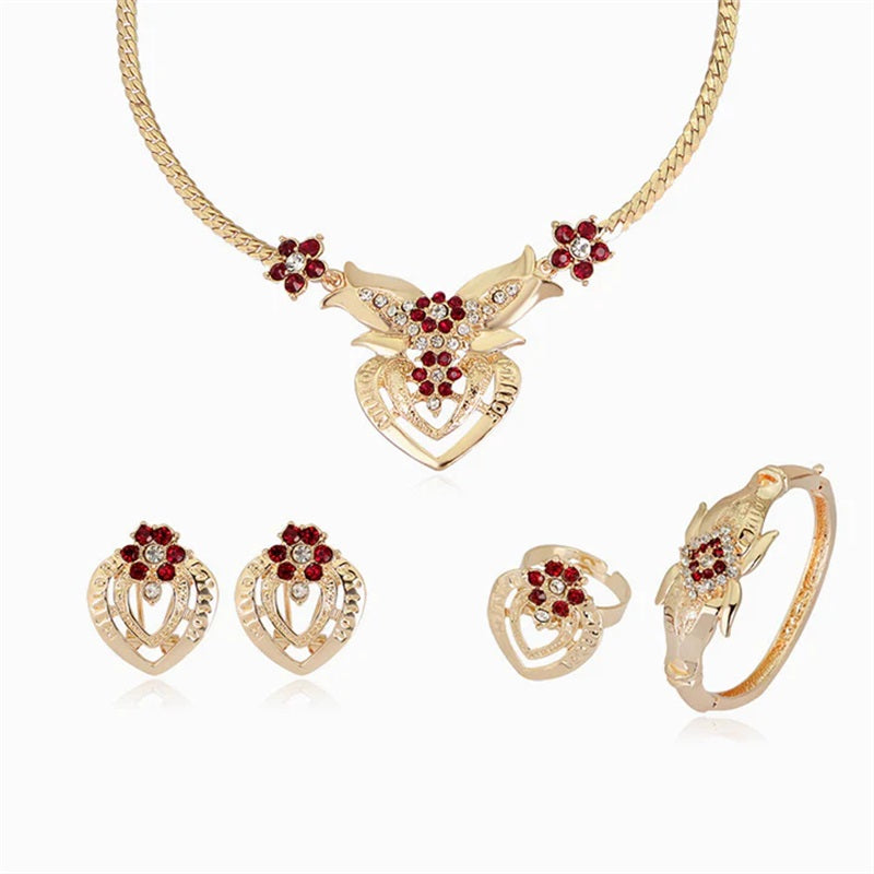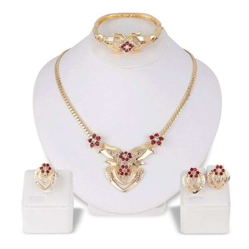 Type: Elegante Dames Rode Bloem Strass Juwelen Set
