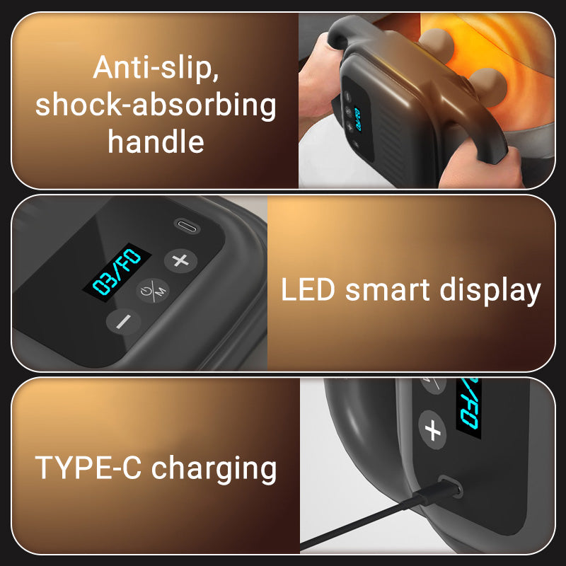 3 STANDEN 4 INTENSITEITSNIVEAUS: Pas je massage-ervaring aan met drie verschillende modi en vier intensiteitsniveaus. Of je nu een zachte massage nodig hebt om te ontspannen of een intense sessie voor verlichting van het diepe weefsel, dit massageapparaat past zich aan jouw voorkeuren aan.