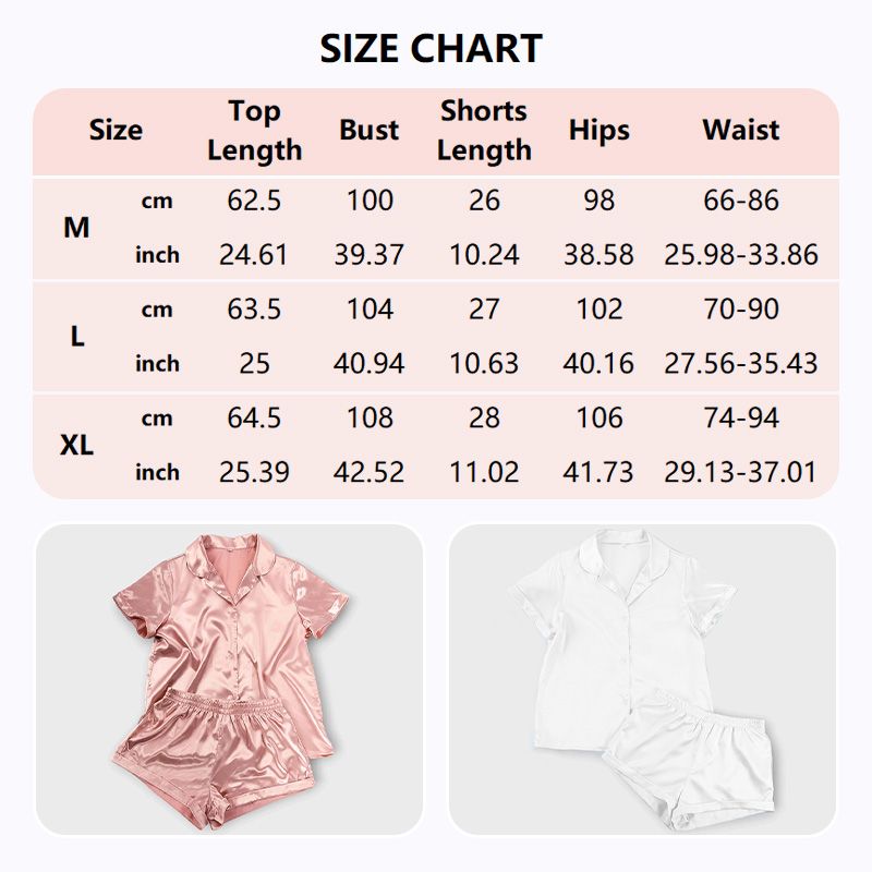 Dames zomer pyjama van imitatie zijde - Top met korte mouwen en bijpassende shorts