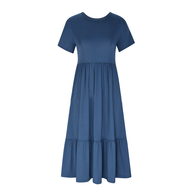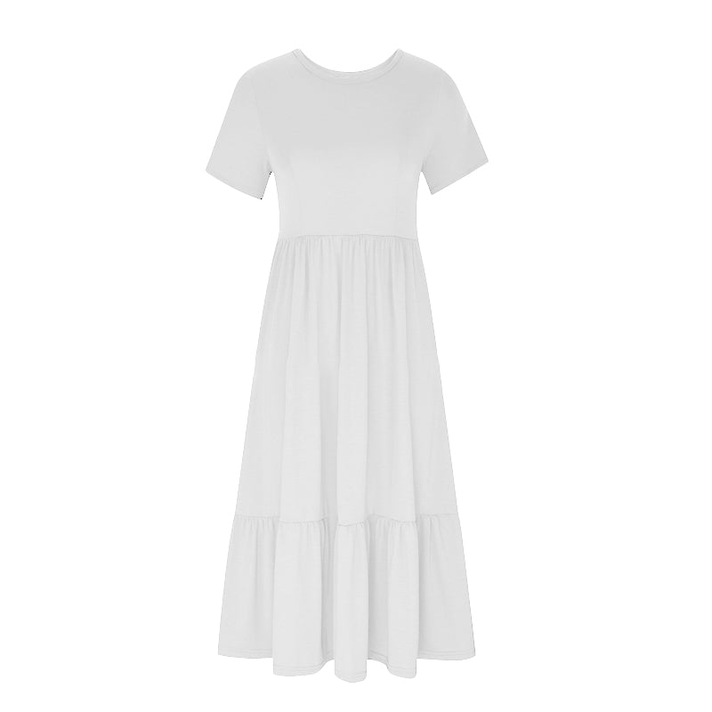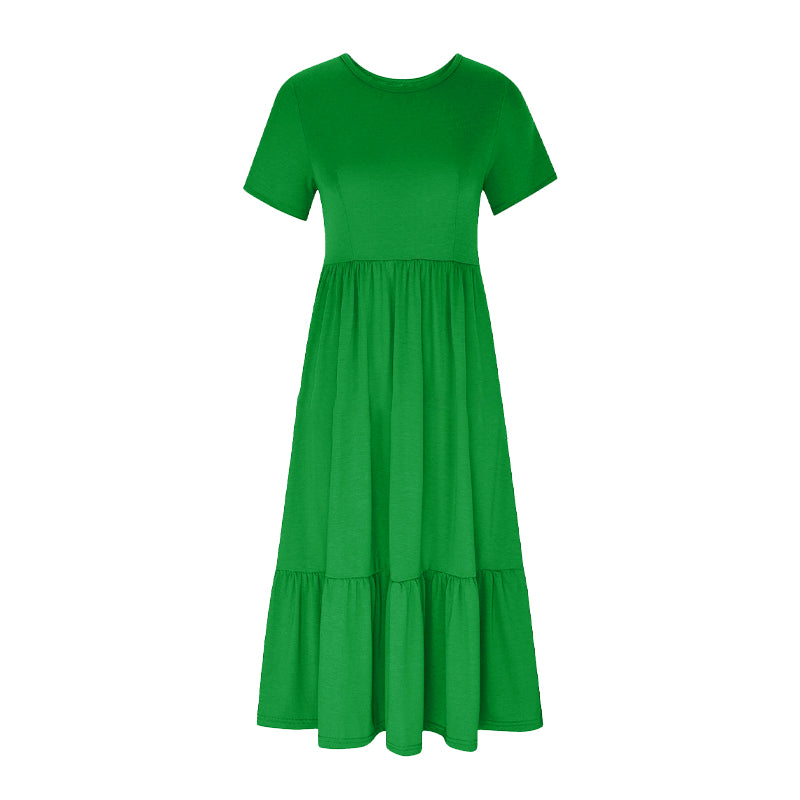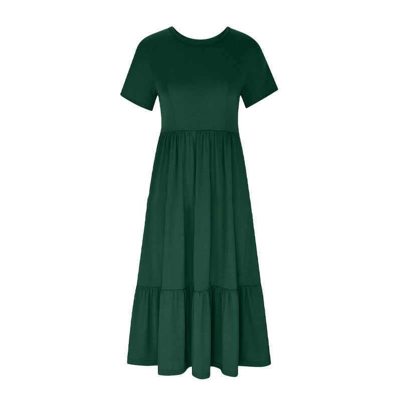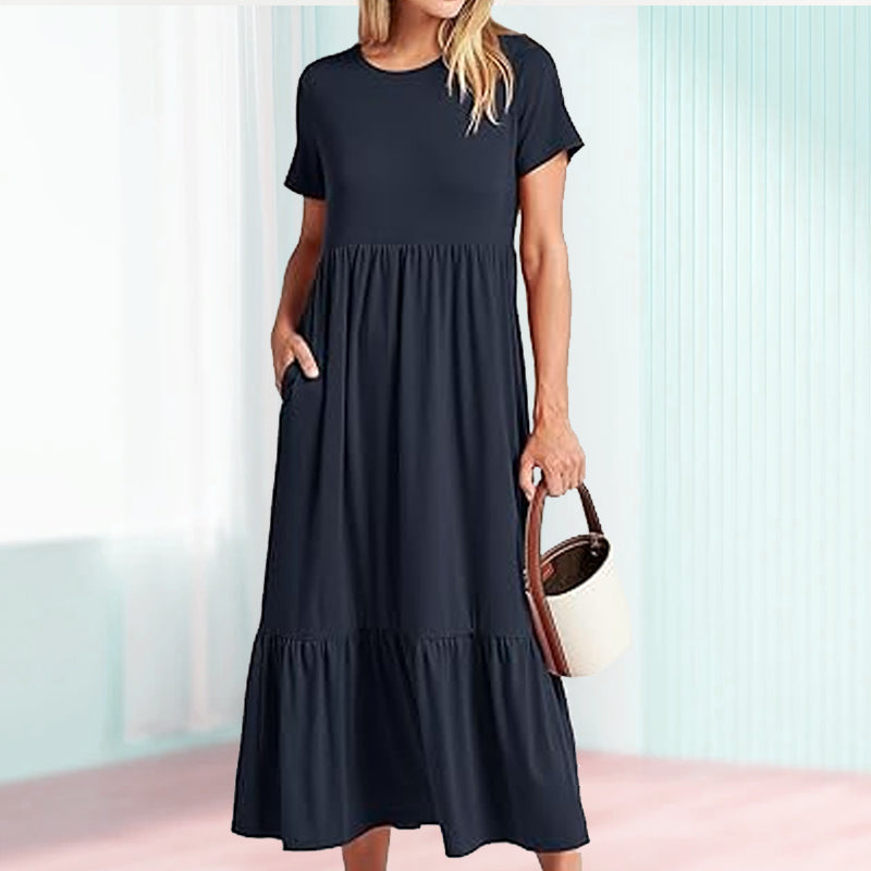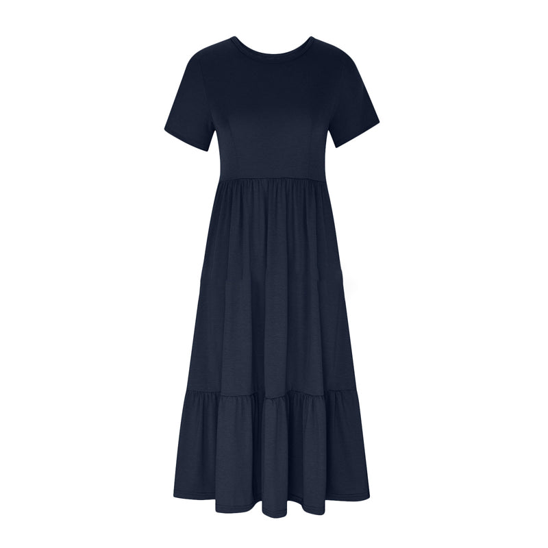 Het pakket bevat: 1 * Effen damesjurk met ronde hals en plooien