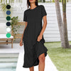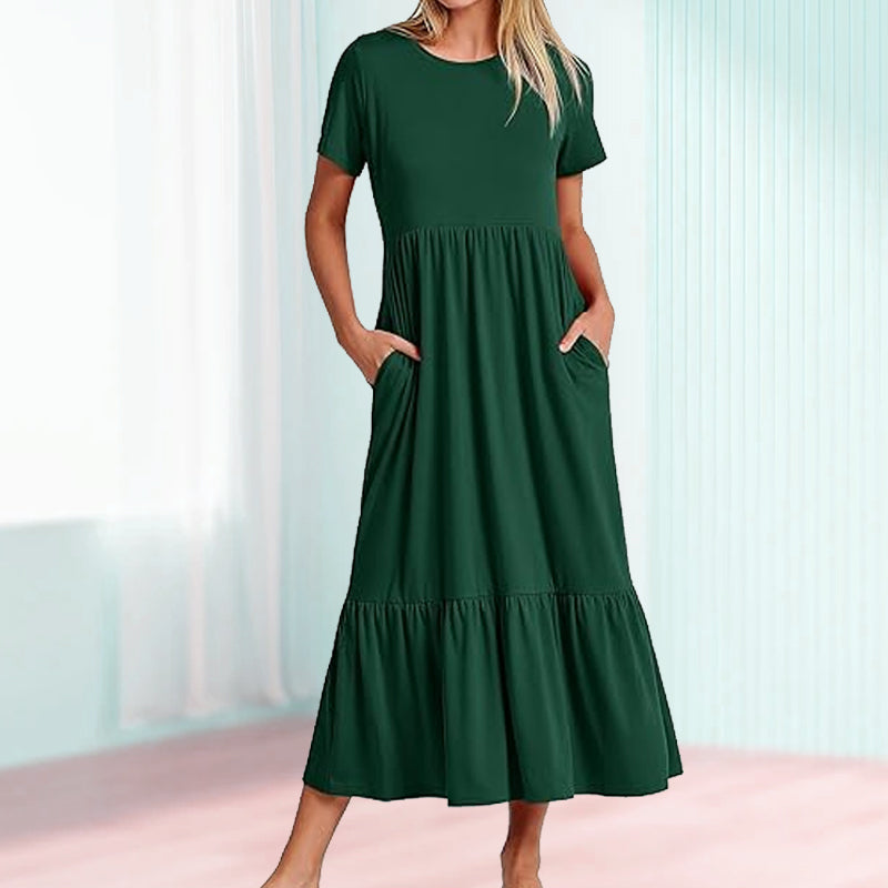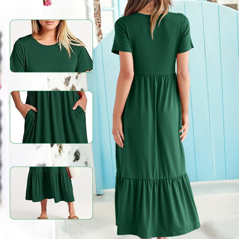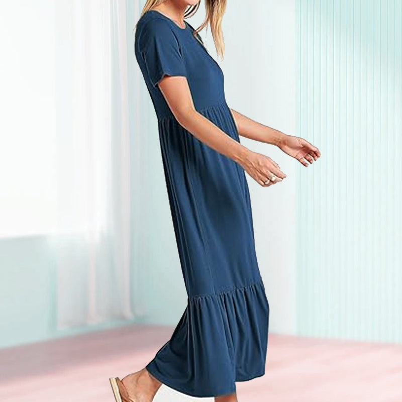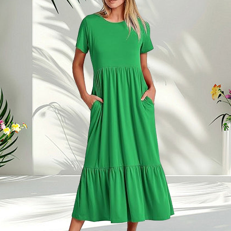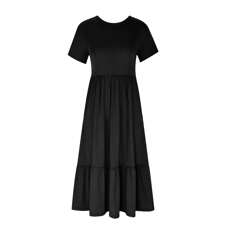 Het pakket bevat: 1 * Effen damesjurk met ronde hals en plooien