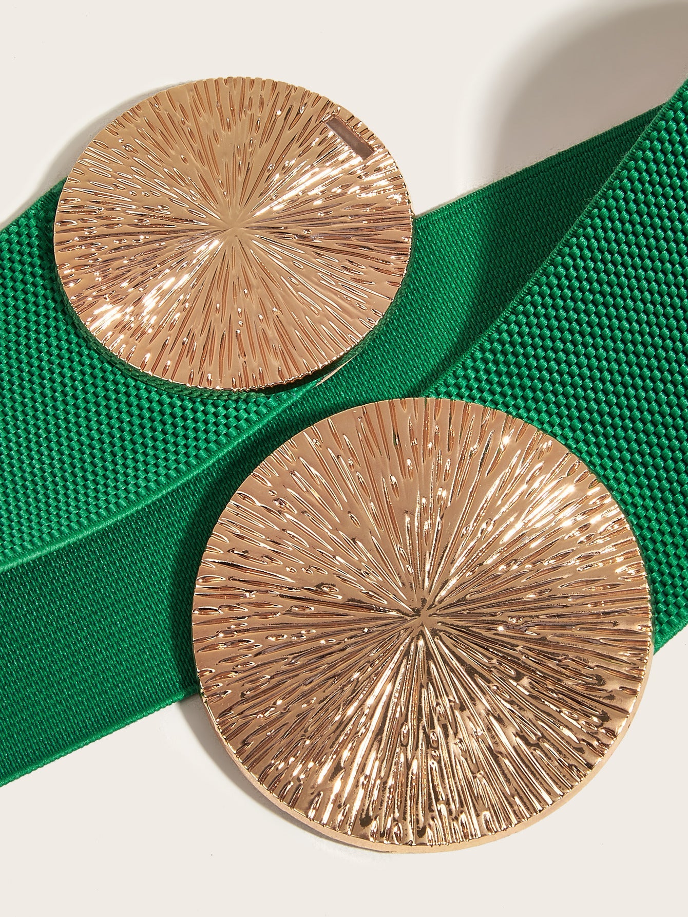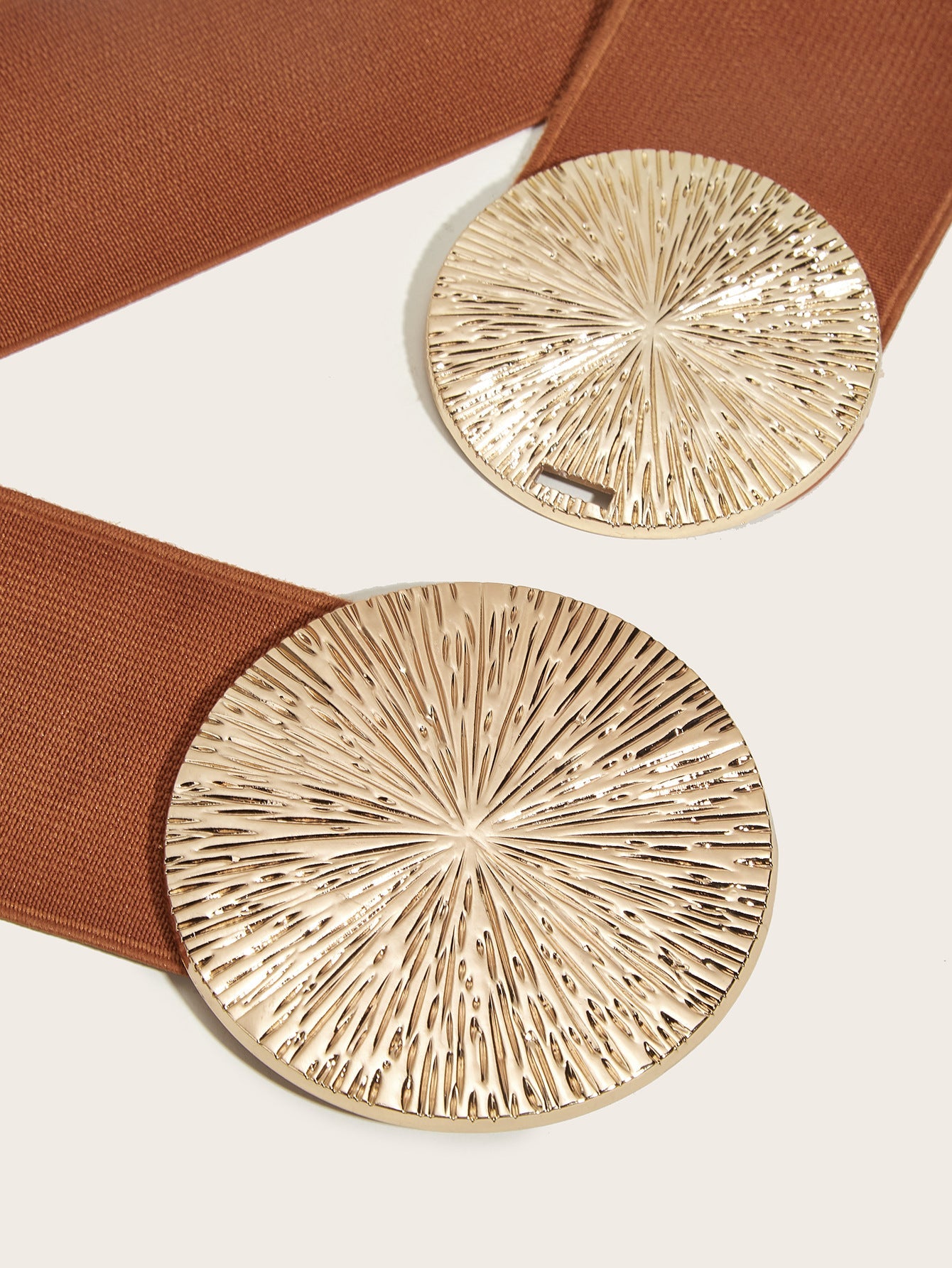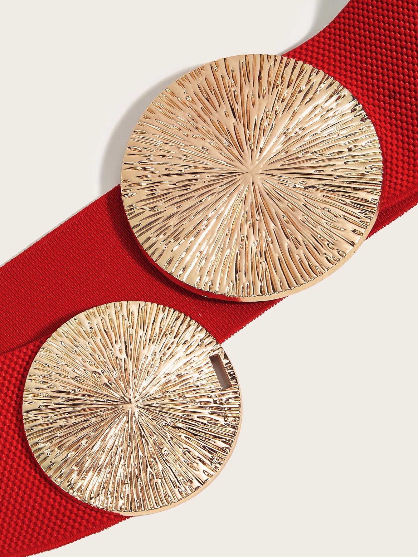 Belt length: 70 cm Belt buckle material: Alloy Closure type: Hook Width: Wide style (>4cm) Design details: Double round buckle with elastic adjustment