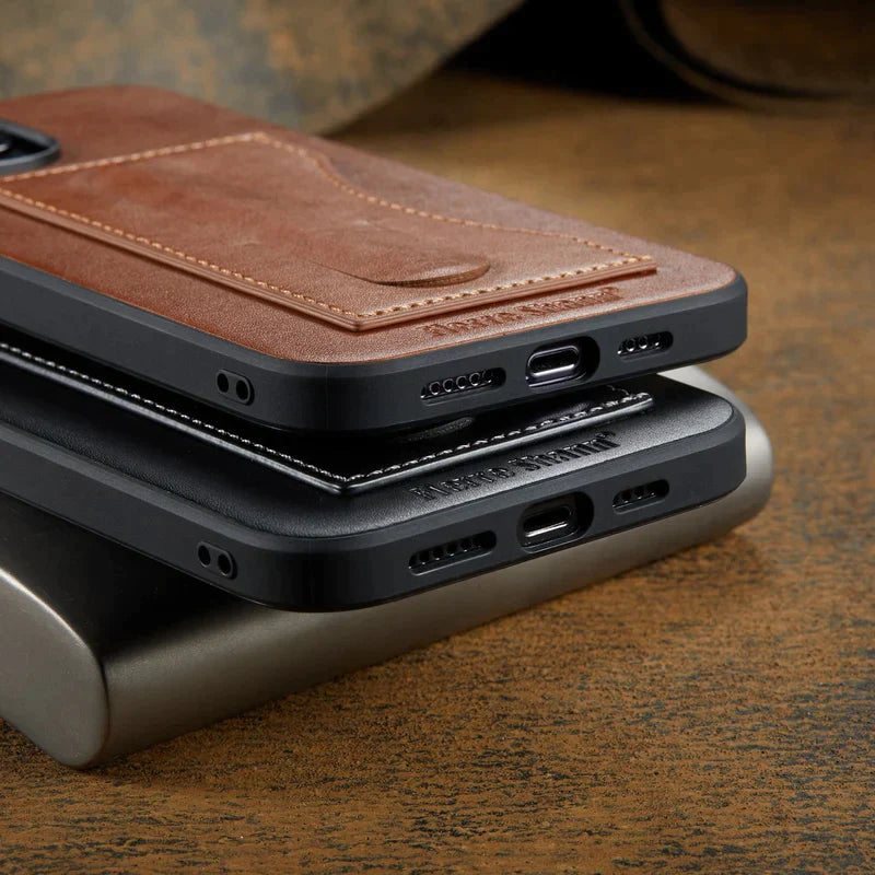 Leren iPhonehoesje met onzichtbare standaard en kaartsleuven
