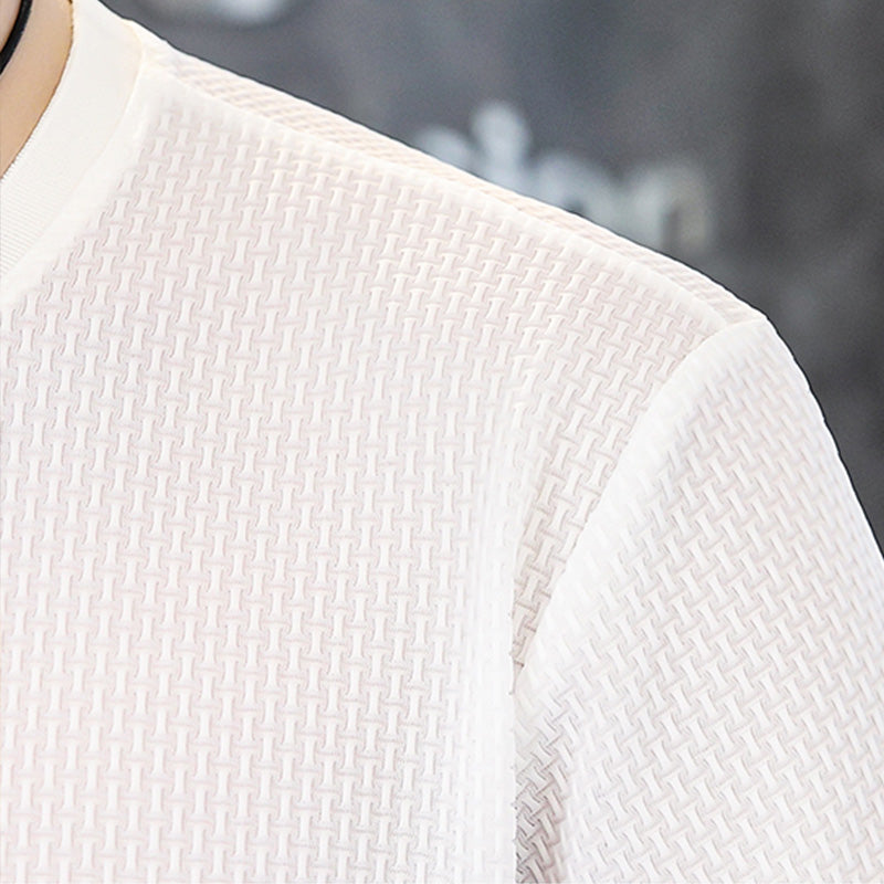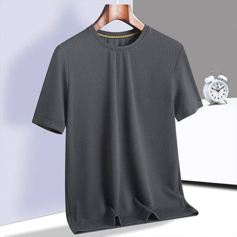 Blijf koel en stijlvol deze zomer met ons Heren Zomer Cool Ronde Hals T-Shirt. Met een uniek reliëf textuurontwerp en gemaakt van ademend nylonweefsel, biedt dit t-shirt zowel comfort als modieuze stijl. Of je nu naar het strand gaat, met vrienden rondhangt of buitenactiviteiten onderneemt, dit t-shirt is een onmisbare toevoeging aan je zomergarderobe.