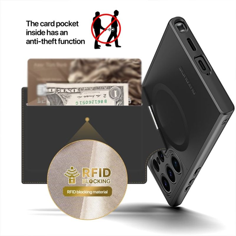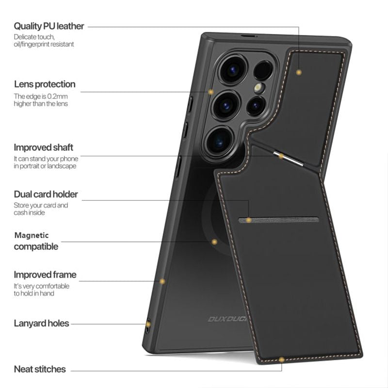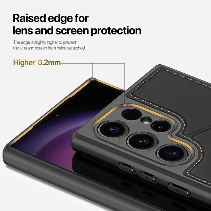 ✨Luxe leren telefoonhoes met magnetische sluiting, RFID-bescherming, kaarthouder en standaard voor Galaxy
