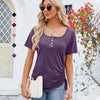 U-hals, korte mouwen, knoopontwerp, losse pasvorm, effen kleur, eenvoudige T-shirt, comfortabel en schattig dames zomershirt. Verhoog je alledaagse look met een flatterend zijdelings trekkoordontwerp voor een afslankend effect.