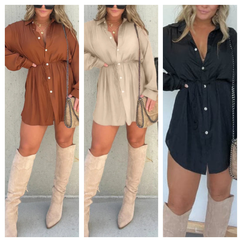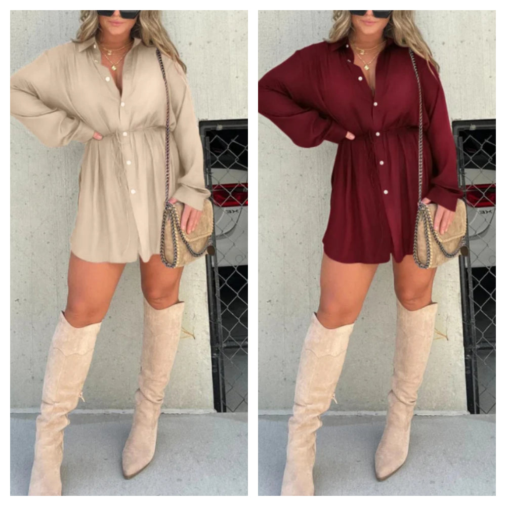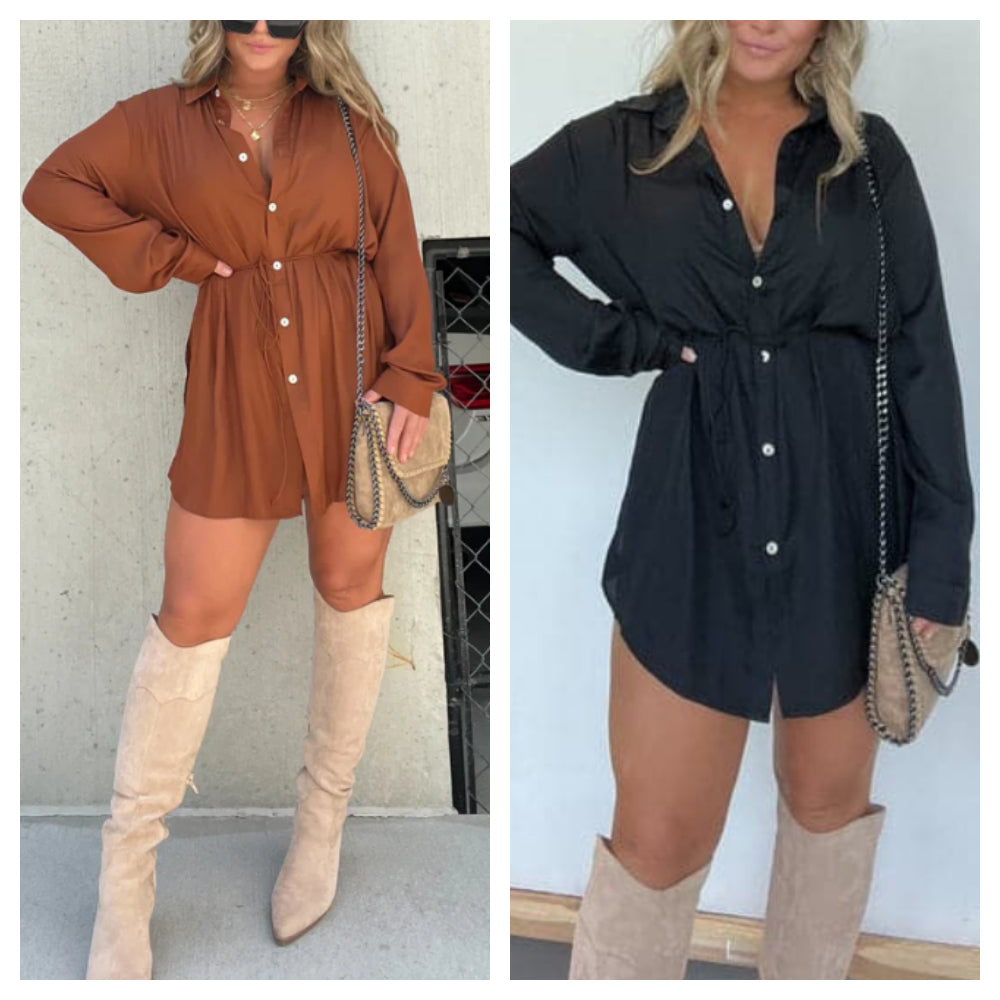- 【FEATURES】: satijnen jurken met lange mouwen voor vrouwen, je kunt het beschouwen als tuniekjurk met knoopjes of lange satijnen top, kwastjes ontwerp in zowel de mouwzoom als de onderkant, midi overhemdjurk, losse pasvorm, zacht en ademend satijnmateriaal!