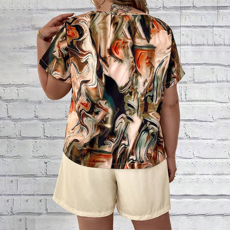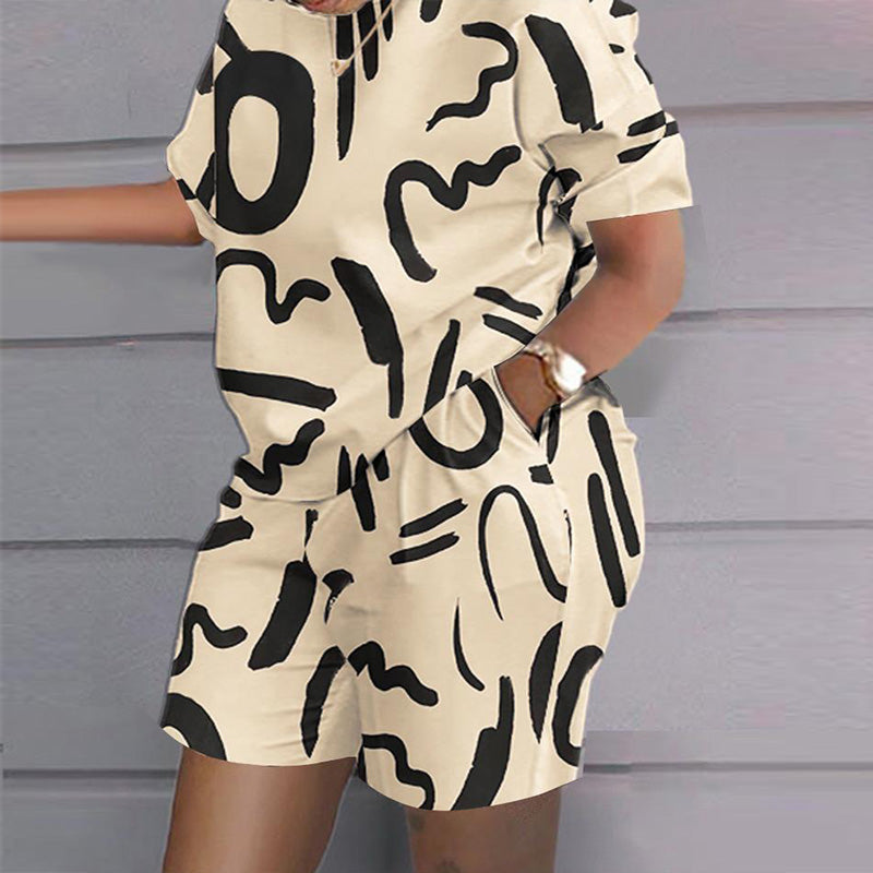 Trendy 2-delige set - T-shirt met korte mouwen en korte broek met print