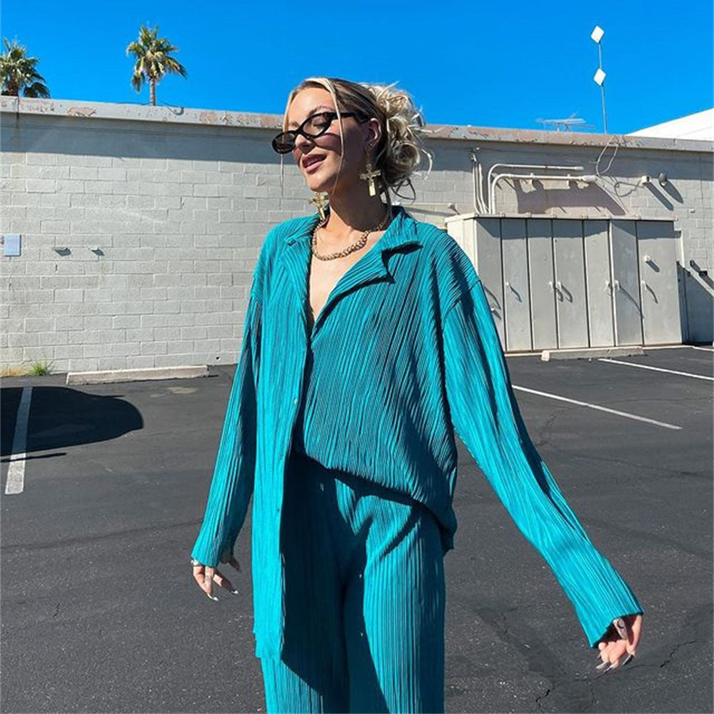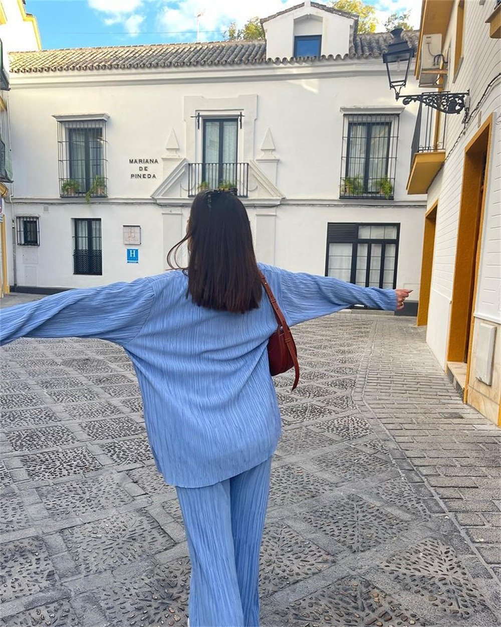 Makkelijk te combineren: deze tweedelige set is zeer stijlvol en heeft een geplooid ontwerp, waardoor je een meer casual en minimalistische look krijgt. Draag deze tweedelige set met je favoriete hoed, tas en schoenen en je zult er in elke combinatie prachtig uitzien en de aandacht trekken van voorbijgangers.