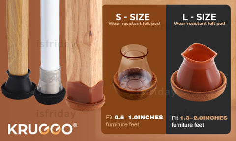 Bijgewerkte versie isĀ verkrijgbaar in twee maten voor verschillende maten meubelpoten, MaatĀ S voor 0,5-1,0 inchĀ en maat L voor 1,3-2,0 inchĀ voor verschillende vormen meubelpoten. Kies de juiste beschermhoes voor je meubel!