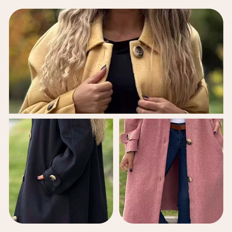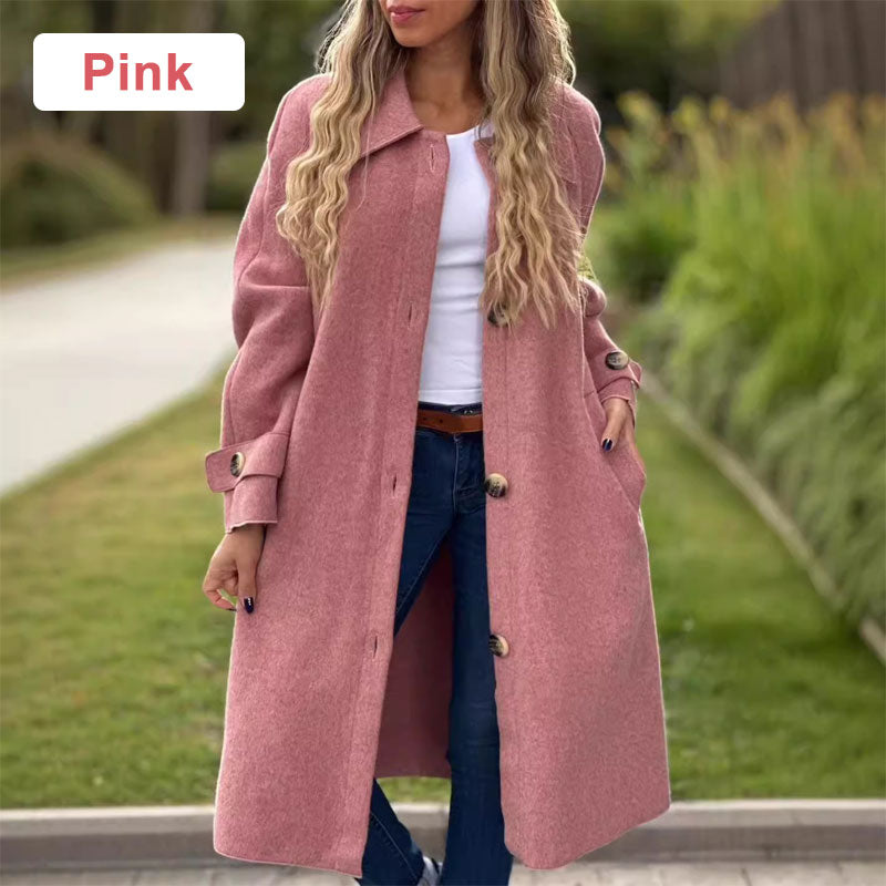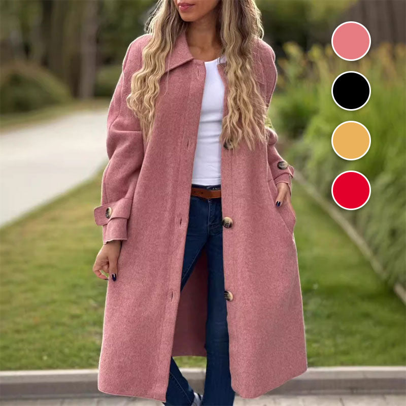 Lange Effen Kleur Jas met Knoopsluiting voor Dames