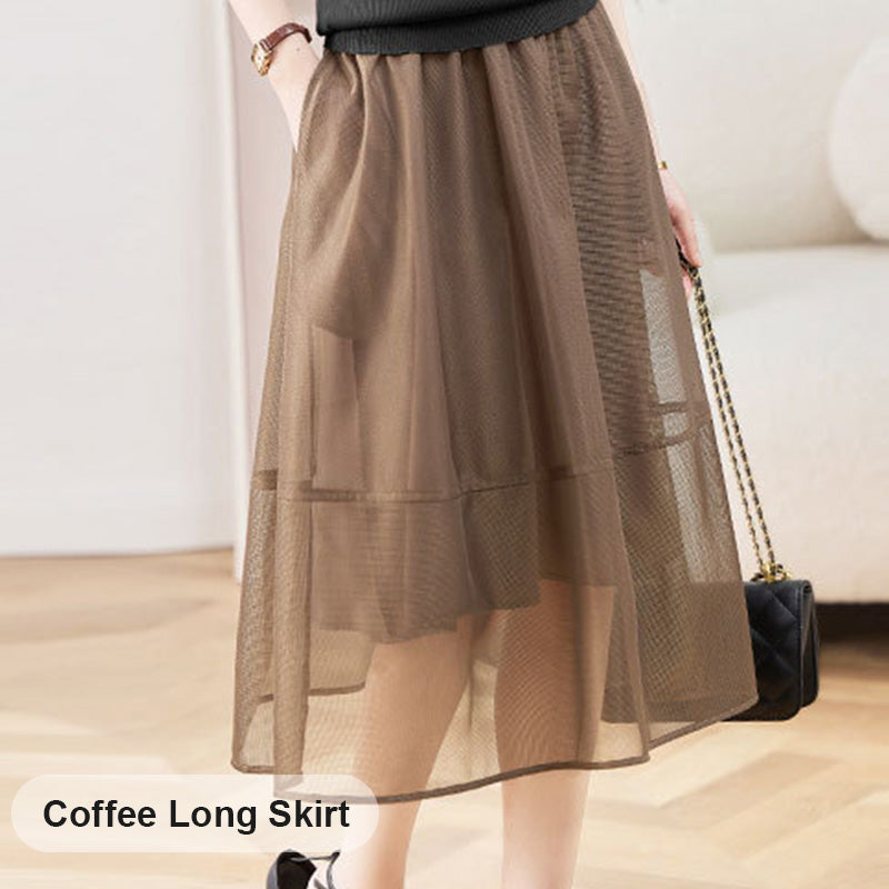 DUBBELLAGIG ONTWERP - De lange rok heeft een dubbellagig ontwerp voor extra bedekking en gemoedsrust. De binnenste laag fungeert als een niet-transparante voering en zorgt voor de veiligheid van je kleding, terwijl de buitenste laag gemaakt is van doorzichtige stof voor een elegante en stijlvolle uitstraling.